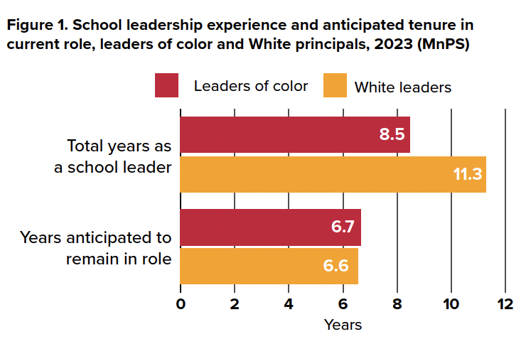 Research suggests that leaders of color have a positive impact on both teachers of color and students of color (Perrone, 2022). Schools with leaders of color are likely to have more teachers of color (Bartanen & Grissom, 2023; Perrone, 2022). Their leadership is associated with increased teacher of color recruitment and retention (Perrone, 2022). Having more teachers of color increases the likelihood that a student of color is taught by a same-race teacher. This matters because empirical evidence suggests that same-race student teacher matches lead to better academic outcomes for students (Egalite, 2024; Gerhenson et al., 2022; Egalite et al., 2015), including increased graduation and college attendance rates (Gerhenson et al., 2022). In Minnesota, where students of color are far less likely to have a school leader who looks like them than their White peers, sustaining and growing the population of leaders of color is a key equity lever.